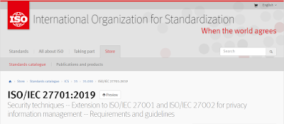 如今,「ISO/IEC 27701:2019 Security techniques — Extension to ISO/IEC 27001 and ISO/IEC 27002 for privacy information management — Requirements and guidelines」已在2019年8月正式發布,成為全球第一個隱私保護和個資管理的ISO標準。